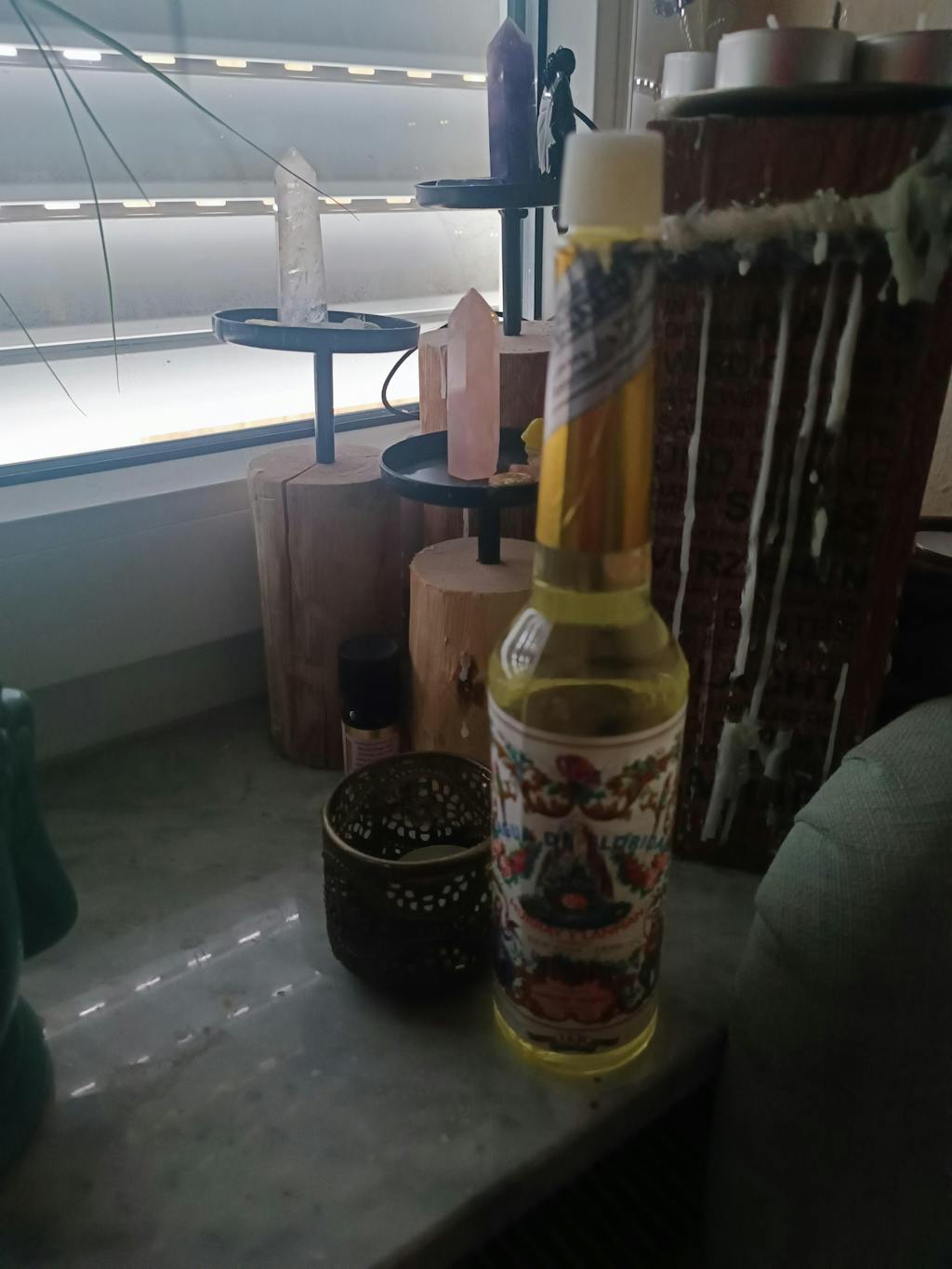 Schaffe eine spirituelle Atmosphäre mit Ritualutensilien und Gemütlichkeit: